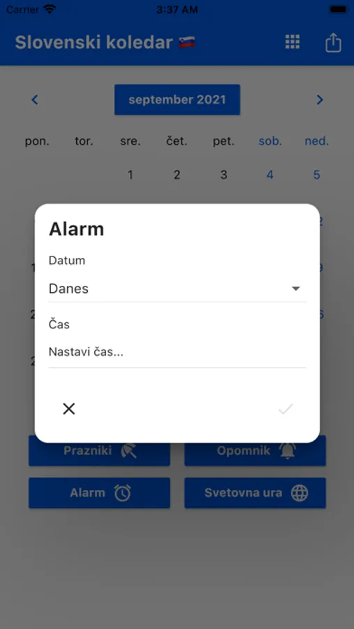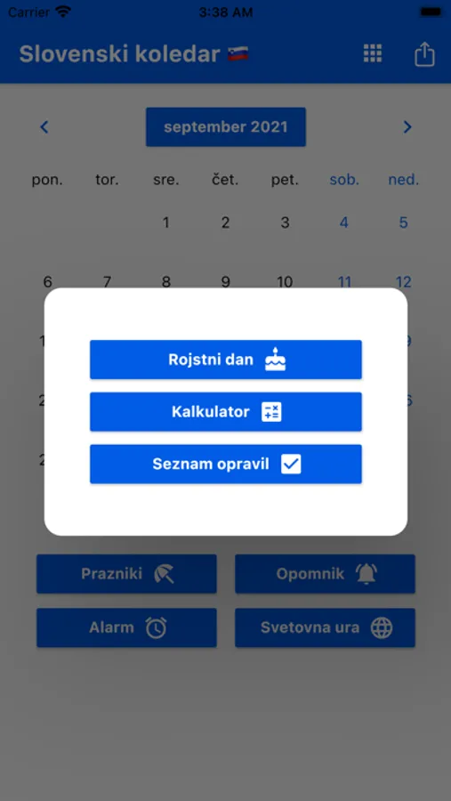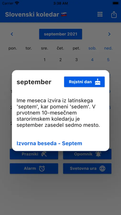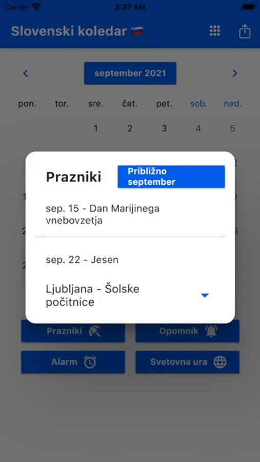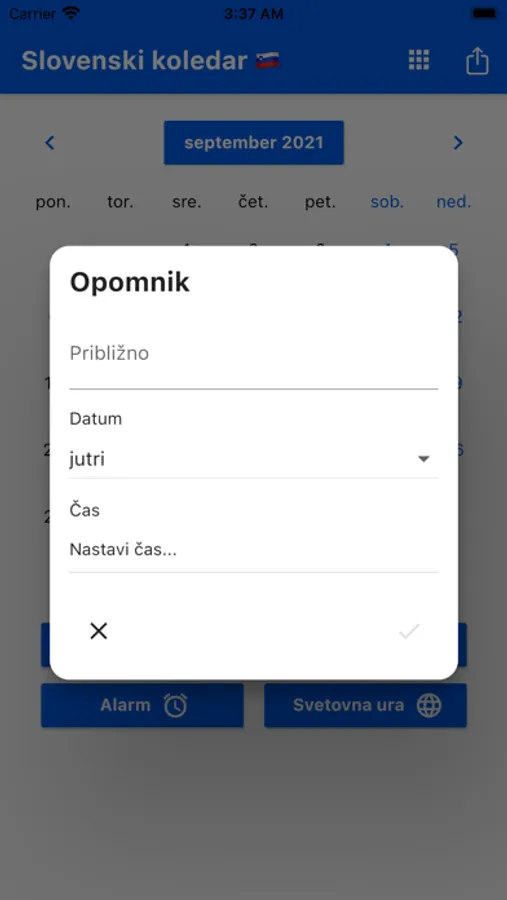 Nastavite lahko opomnike in prejemate obvestila ob pravem času. Na Slovenske praznike vas vsekakor spomnimo. Prijavite se lahko za rojstne dneve svojih prijateljev in družin, da boste vnaprej obveščeni. Vključeni so priročni pripomočki, kot so kalkulator, svetovna ura in budilka. Svetovna ura prikazuje čas v različnih mestih po svetu. Naš koledar vključuje seznam opravil z zgodovino nastanka vsakega meseca. Slovenski lokalni čas. Prevajalec.