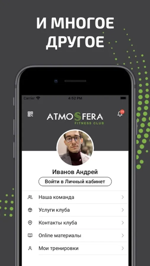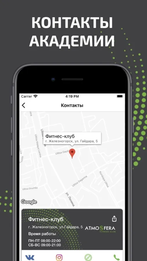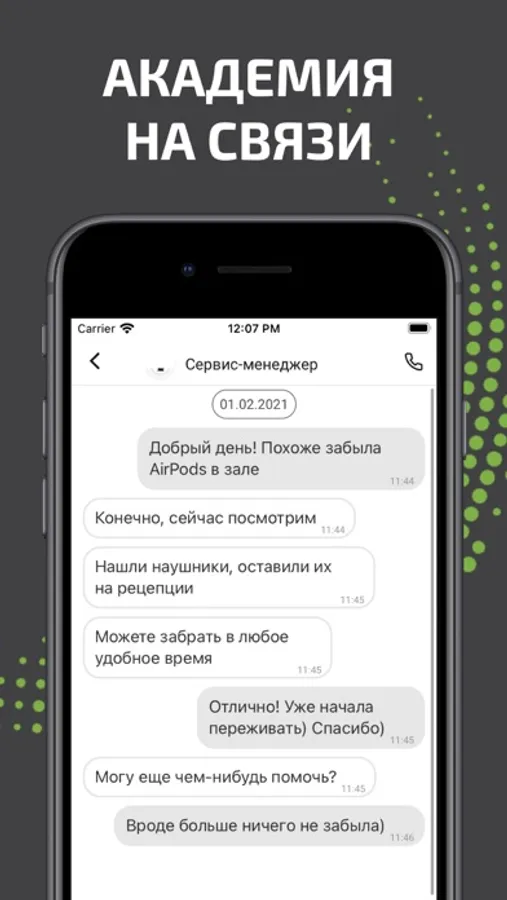 - мгновенная связь с администратором клуба