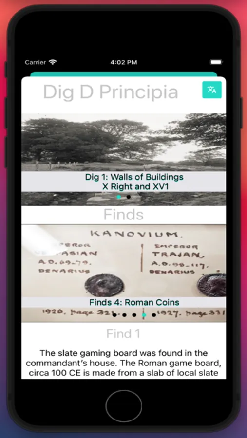 The app gives a full virtual fly over of what the fort was like at Caerhun. The app also gives you the opportunity of becoming a virtual archaeologist by doing some excavating yourself. The app contains images from the 1920s dig so that you can see all that remains of the fort.