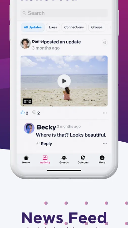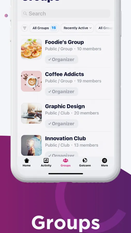 Allows members to organize themselves into public, private or hidden social areas with separate activity feeds and member listing.