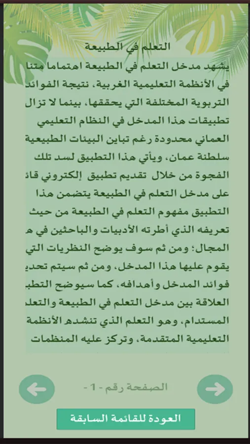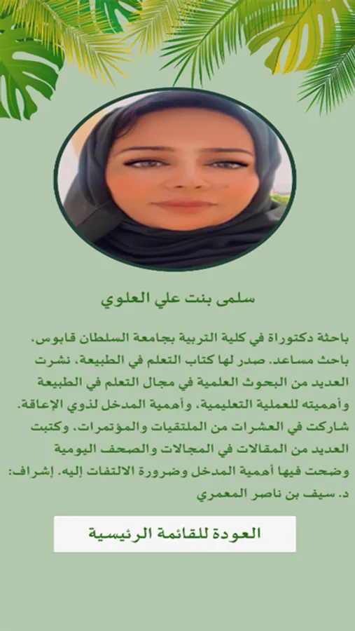 يشهد مدخل التعلم في الطبيعة اهتماما متناميا في الأنظمة التعليمية الغربية، نتيجة الفوائد التربوية المختلفة التي يحققها، بينما لا تزال تطبيقات هذا المدخل في النظام التعليمي العُماني محدودة رغم تباين البيئات الطبيعية في سلطنة عمان، ويأتي هذا التطبيق لسد تلك الفجوة من خلال تقديم تطبيق إلكتروني قائم على مدخل التعلم في الطبيعة يتضمن هذا التطبيق مفهوم التعلم في الطبيعة من حيث تعريفه الذي أطرته الأدبيات والباحثين في هذا المجال؛ ومن ثم سوف يوضح النظريات التي يقوم عليها هذا المدخل، ومن ثم سيتم تحديد فوائد المدخل وأهدافه، كما سيوضح التطبيق العلاقة بين مدخل التعلم في الطبيعة والتعلم المستدام، وهو التعلم الذي تنشده الأنظمة التعليمية المتقدمة، وتركز عليه المنظمات الدولية في إطار استشرافها لتعليم المستقبل وتعده شرطا أساسيا ومهارة لا غنى عنها للوظائف المستقبلية، وللإنسان المستقبلي الذي سيعيش في عالم مختلف في متطلباته وتحدياته. كما سيتطرق إلى الأدوات والاستراتيجيات التي يمكن تنفيذها في الخارج، وأدوار كل من المدرسة والمعلم والطلبة في هذا المدخل، وأفكار لتوظيف المدخل في مناهج الدراسات الاجتماعية وبقية المناهج الدراسية، وكذلك سيطرق إلى سيناريوهات توظيف المدخل، والخطوات التي تلزم لإنشاء حديقة مدرسية، كما سيتضمن التطبيق روابط مهمة تُعين المعلمين على تنفيذ المدخل بسهولة ويسر.