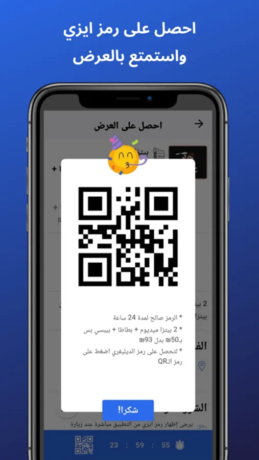 - In delivery orders, give the store the code in numbers by pressing on the QR.