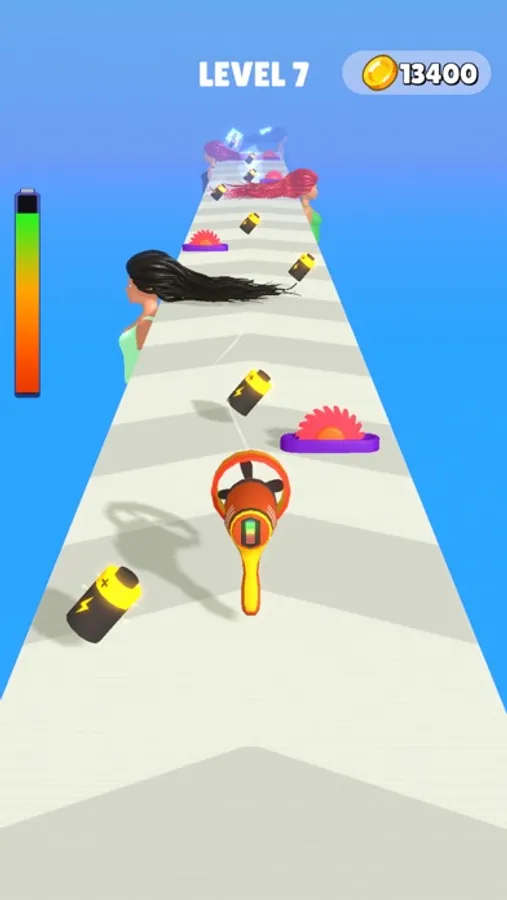 Wet hair is waiting for you to be dried. Take control of the blow dryer and start drying wet hair by collecting the batteries. Stunning graphics, easy gameplay, simple mechanics.
