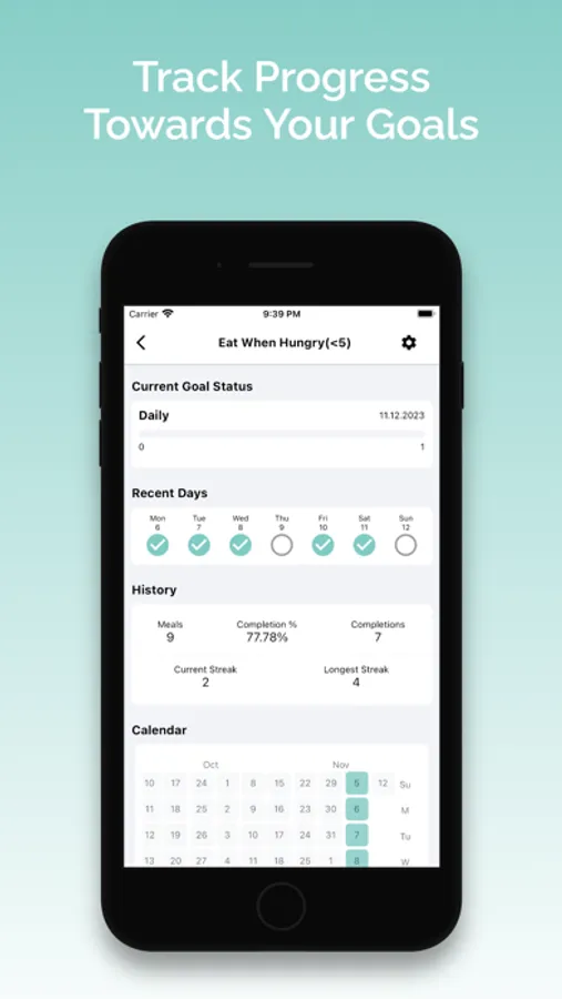 - Track your progress towards any eating-related goal