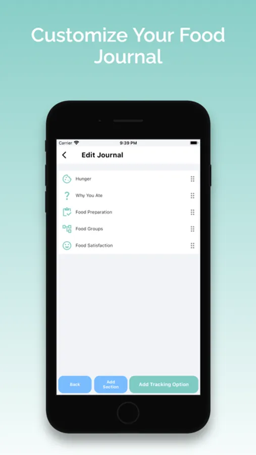 - Customize your food diary with 40+ additional tracking options, such as hunger/fullness, meal timer, why you ate, how you felt after eating, mood tracker, who you ate with, and more.