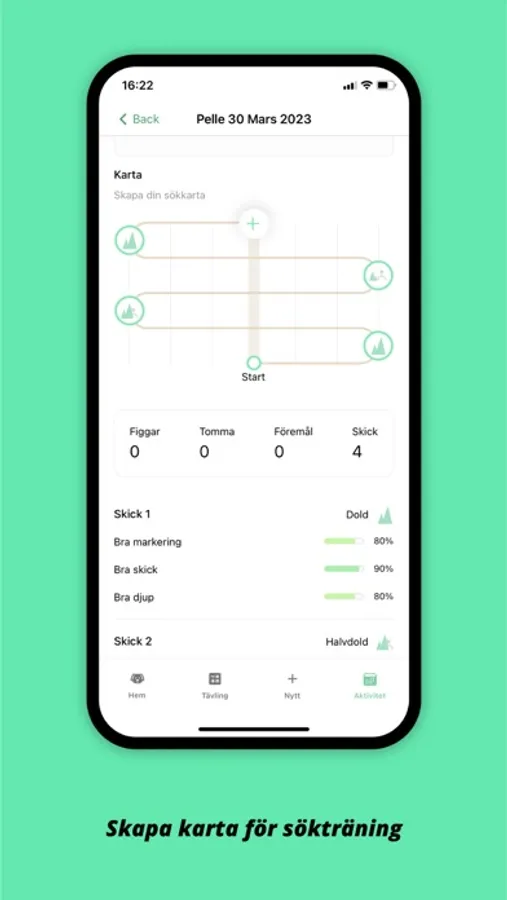 Planera och utvärdera sökpassen genom att skapa en karta över passet i appen. Där kan du bland annat välja djup och synlighet för figuranterna.