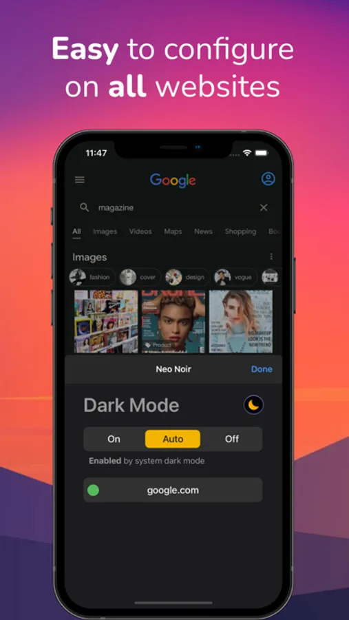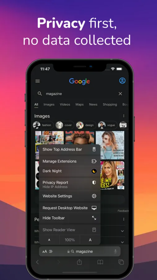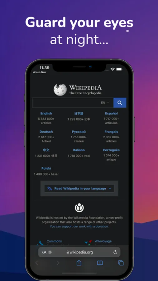 browsing in Safari. Dark Night mode adds