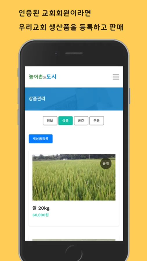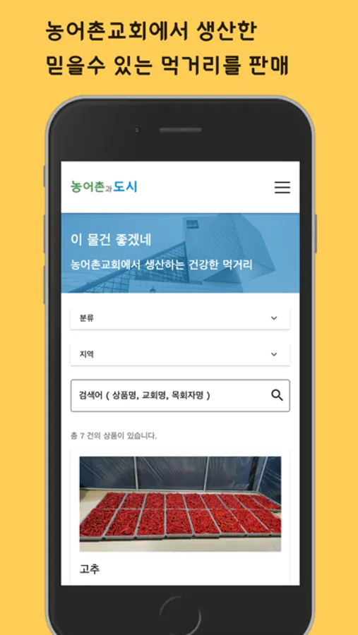 농어촌교회에서 생산한 양질의 믿음이 가는 상품을 직거래로 판매/구매 하고,