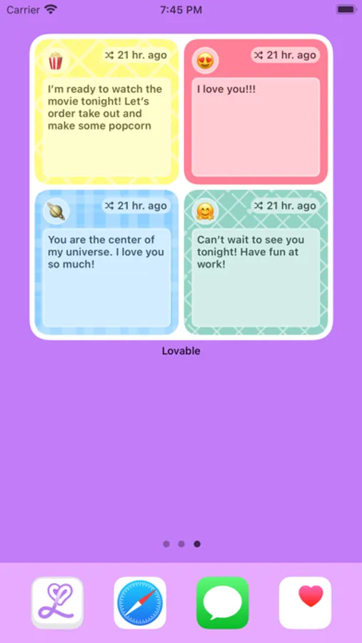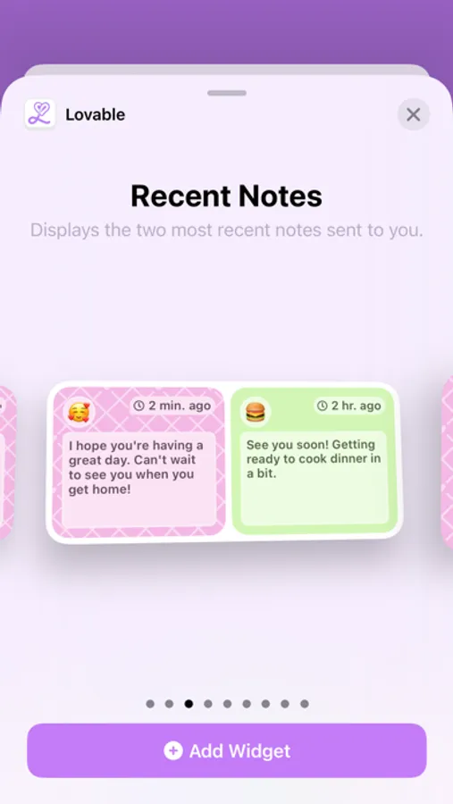 Leave notes for your loved one! Send a Lovable note through the app and it appears on their home screen using widgets, as if you have left them a cute note on their desk, in their car, or another favorite place.
