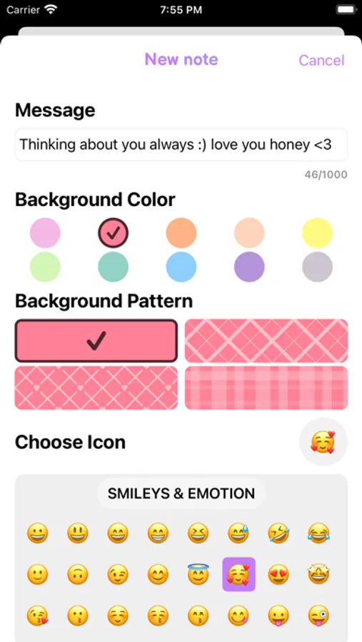 Customize your notes with different colors, backgrounds, and an emoji to show how you feel.