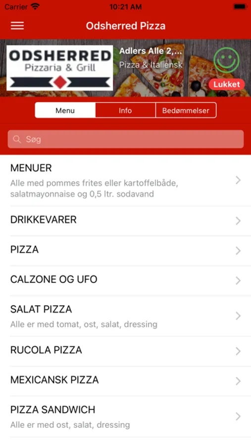 Bestil pizza, burger, pasta, m.m. med få tryk, nemt og hurtigt!