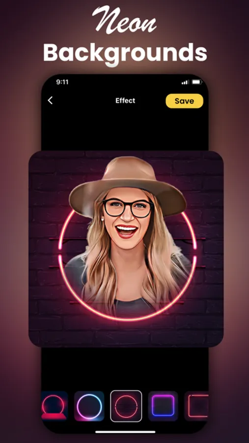 Background replacement using fabulous Neon background effects.