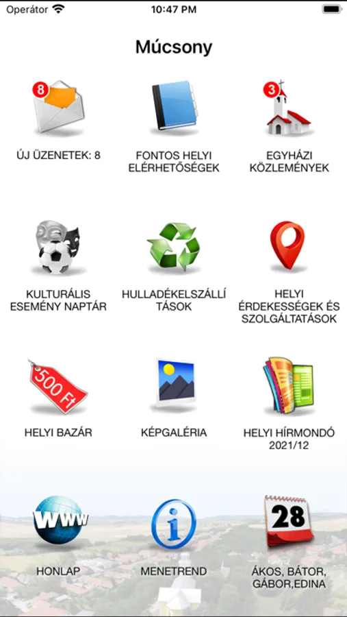 - Önkormányzati azonnali push értesítések okos telefonokra, kiadványok feltöltése, helyi elérhetőségek, egyházi közlemények, kulturális vagy sporthírek.