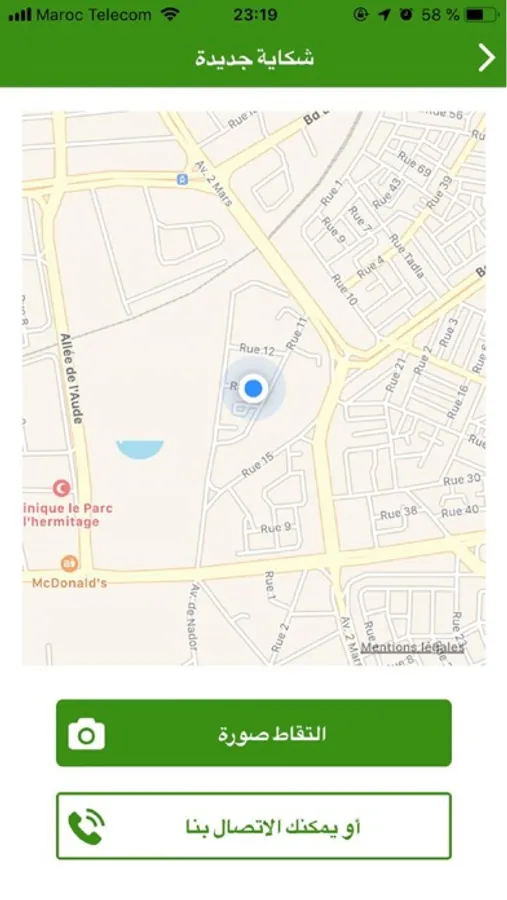 يمكنكم أن ترسلوا إلينا من خلال تطبيق " بطانة و احصين مقاطعات نظيفة " صورة بتحديد الموقع الجغرافي لموقع الشكاية أو الاتصال بنا مباشرة.