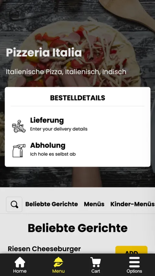 - Durchsuchen Sie die Speisekarte des Restaurants und sehen Sie sich alle anpassbaren Optionen im Voraus an