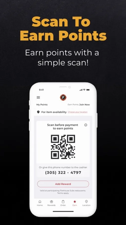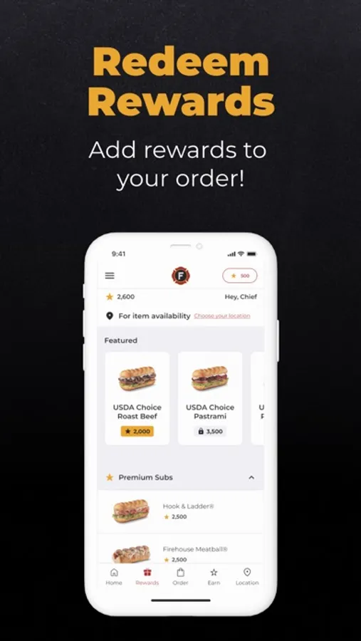 • Loyalty program: Earn 1 point for every $0.01 you spend at Firehouse Subs, and save up your points to redeem free food rewards for subs, upgrades, and more!