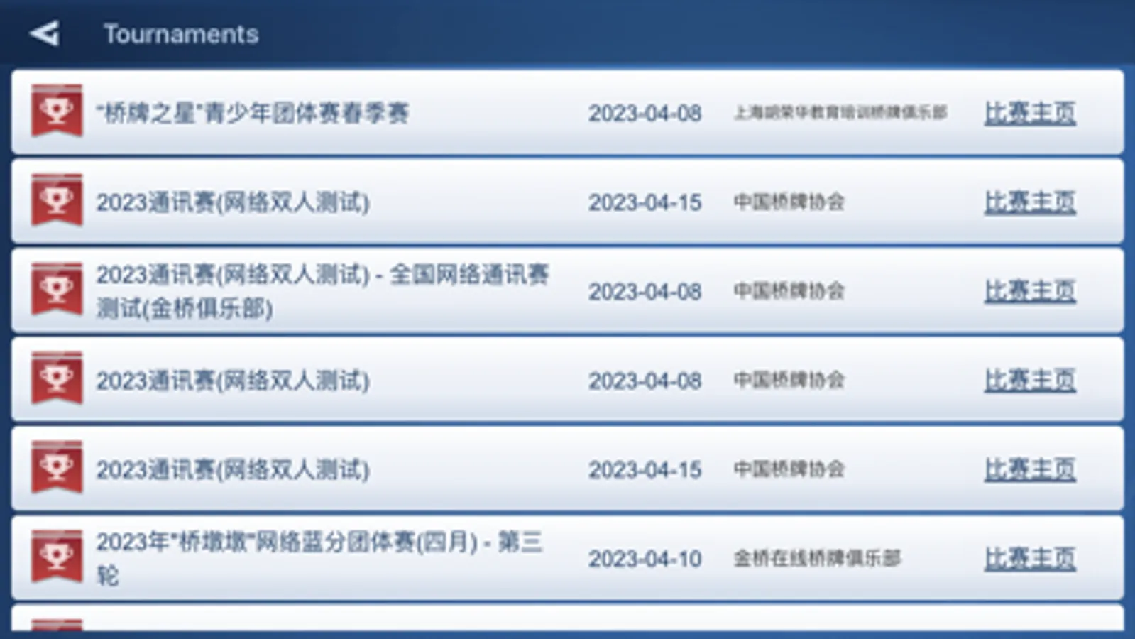 单位会员通过中国桥牌网和Thinkbridge软件, 自己创建比赛, 组织报名和编排比赛, 比赛数据直通中国桥牌网, 方便会员查询比赛结束和叫牌打牌过程.