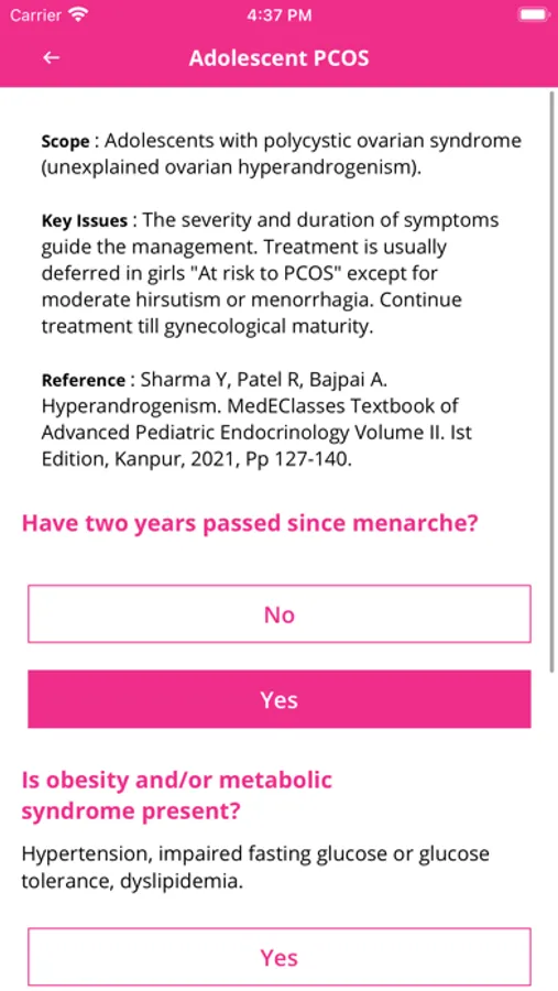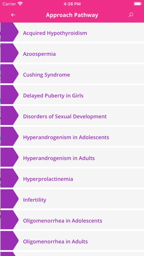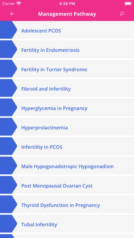This application includes 15 Approach pathways encompassing all Gynaecological Endocrine clinical scenarios including azoospermia, infertility, hyperandrogegism, ovarian cyst, and pubertal disorders. It also includes 12 Management pathways with state-of-the-art guide for gynaecological endocrine disorders including endometriosis, tubal and unexplained infertility, fibroid, hypogonadotropic hypogonadism, PCOS, and Turner syndrome.