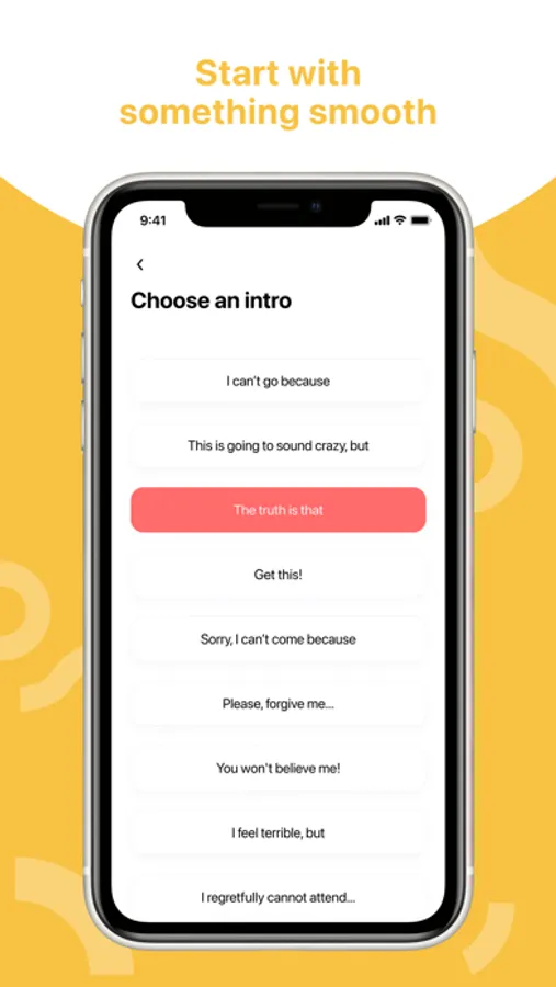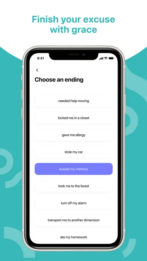 Do you need to cancel plans? Make it with style! This app is going to make your moment a like bit awkward by giving you some random excuses in three simple steps or, with you prefer, automatically.