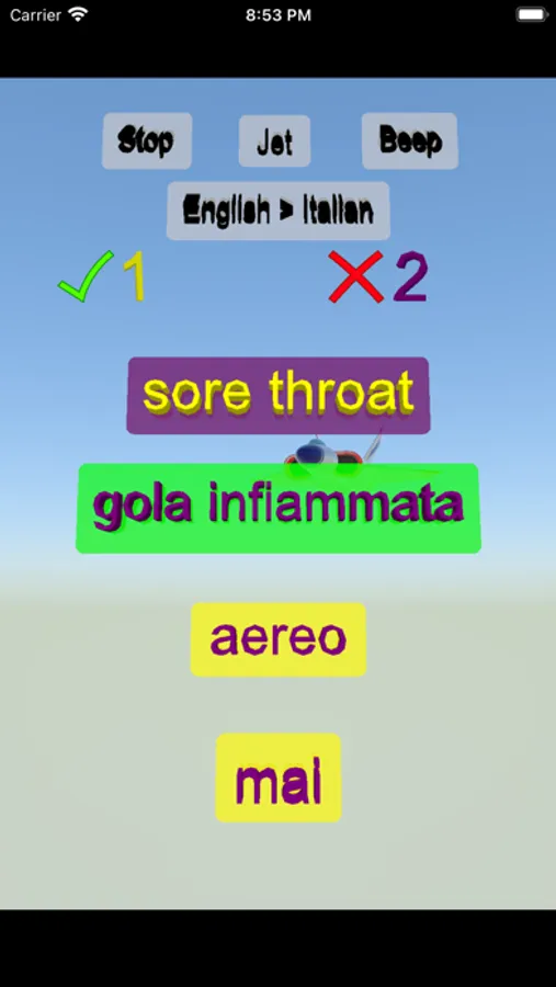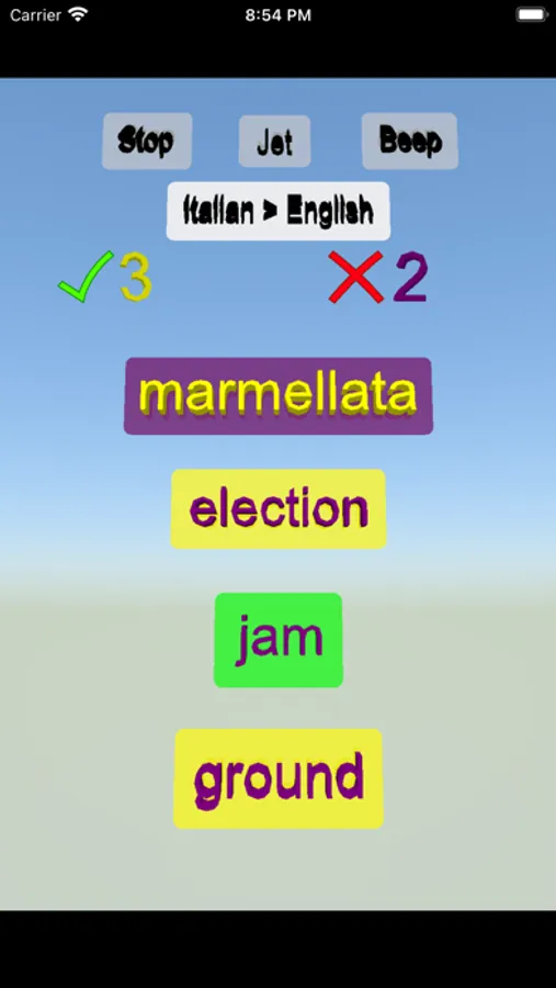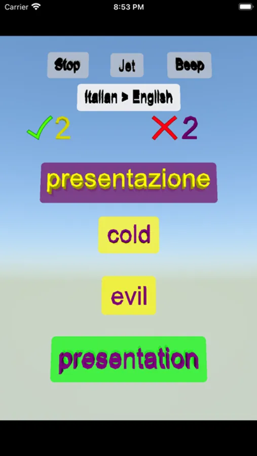 You will see a word on the top and answers below the word. You will see green border if you select the correct answer. You can change the game as English to Italian and Italian to English. You can increase your points with correct answers.