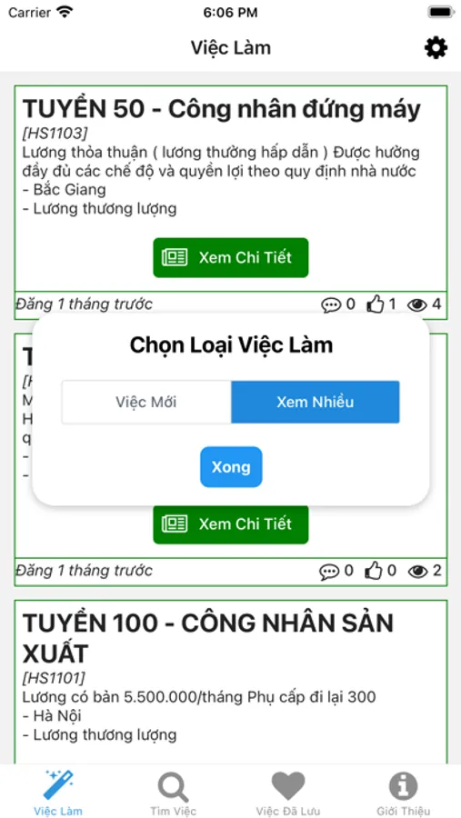 v1.7.1 - Ở màn hình Việc Làm, người tìm việc có thể chọn xem Việc Mới, hay việc đang được Xem Nhiều