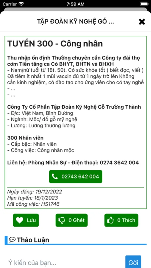 Các nhà tuyển dụng đang có nhu cầu tuyển công nhân, nhân viên có thể liên hệ nhà phát triển app để đăng tin tuyển dụng và đạt được kết quả tốt nhất.