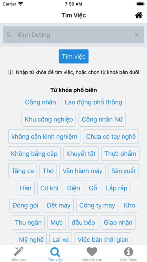 v1.6.2 - Ở màn hình Tìm Việc, người dùng thấy các từ khoá tìm kiếm đang phổ biến để tiện sử dụng