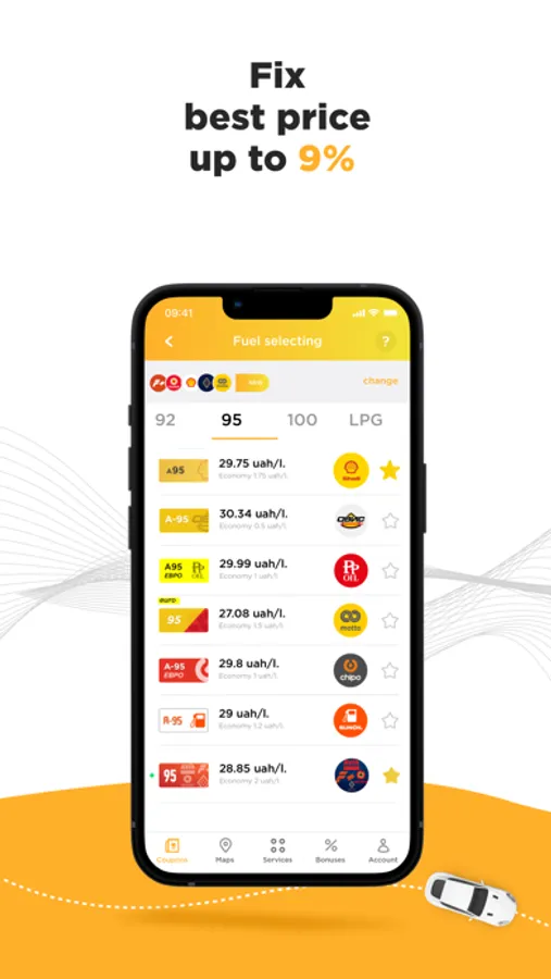 Fast and convenient! Download and get up to 9% fuel savings at well-known filling stations in Ukraine! Coverage throughout Ukraine. Refueling the car is now fun!