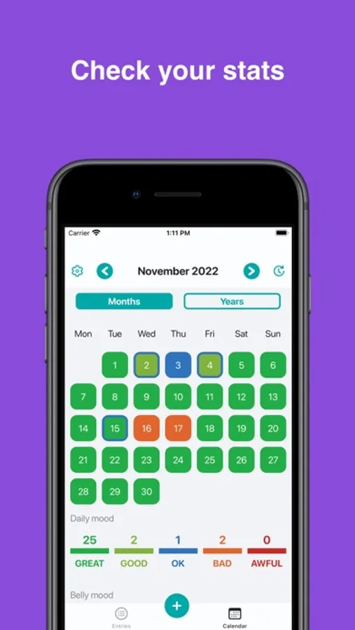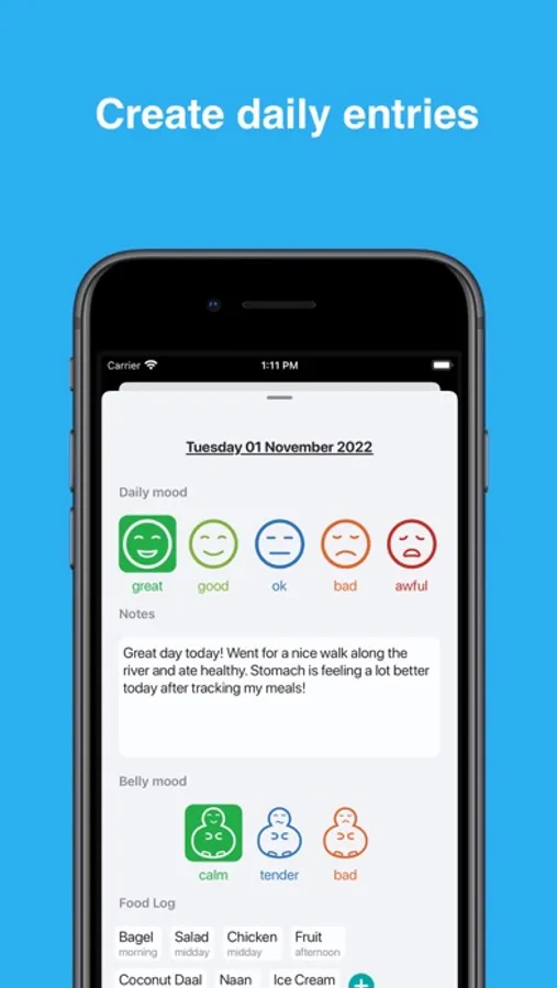 Track your daily mood, your belly and your meals.