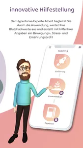 Um die Empfehlungen zur Behandlung Ihres Bluthochdrucks bestmöglich auf Ihre individuelle Situation abzustimmen, holt sich Albert während des Programms alle wichtigen Informationen von Ihnen ein und hält Sie dazu an, Ihre Blutdruckwerte, Ernährung, körperliche Aktivität, Genussmittelkonsum und Entspannungsübungen zu dokumentieren. In regelmäßigen Abständen analysiert Albert Ihren Fortschritt und gibt Ihnen persönlich auf Sie zugeschnittene Empfehlungen. Im Programm erwartet Sie unter anderem: