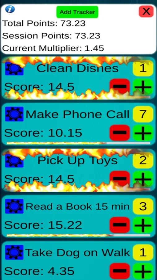 1. Custom point trackers to keep track of any task you want. Customize them with score counts that can be used to delay gratify goals you set yourself like going out to a movie, buying a new game, or going out to eat.