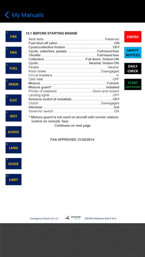 Our checklist are created so with 2 clicks you will have the relevant information you need. Instead of opening a RFM/POH book and waste valuable time, with our ECL you'll have the relevant information in no time at all.