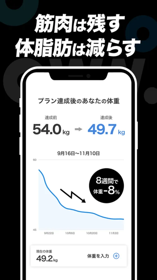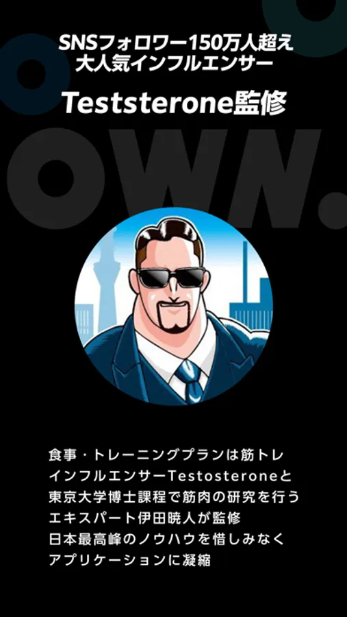 筋トレプラン機能の無料開放も、10日間の無料体験期間も、サブスクリプション不要も、価格設定も、すべてはOWN.があなたに見せる覚悟と美学です。