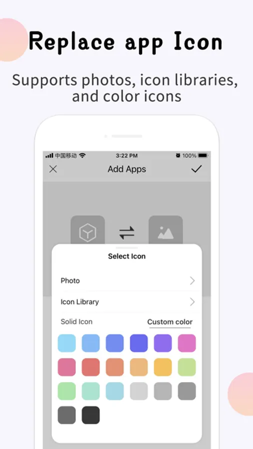 #Customize app icons. It supports selecting photos from photo albums as app icons, selecting icons from the built-in icon library, or freely defining color icons. Personalized app icons beautify mobile desktop icons