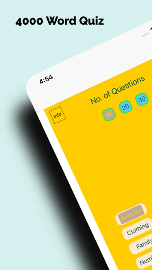 Option to choose 10, 20 or 30 questions to be tested on.