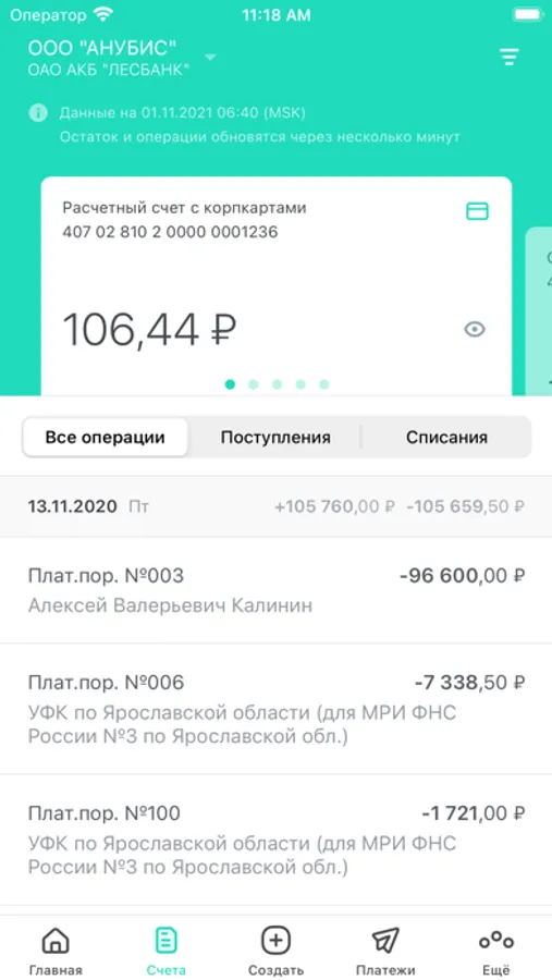 - переводы по своим счетам