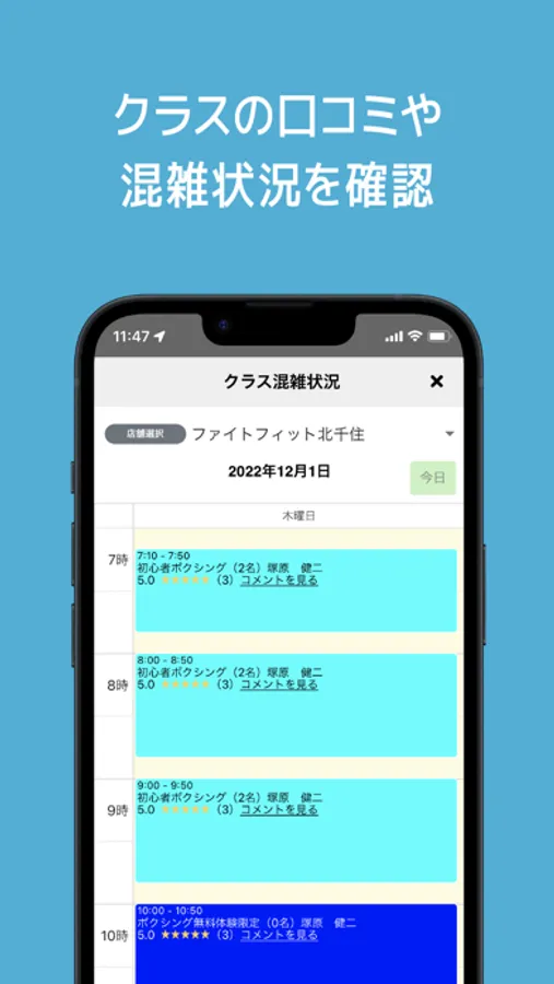 トイカツ道場のクラスの混雑状況が閲覧できます。