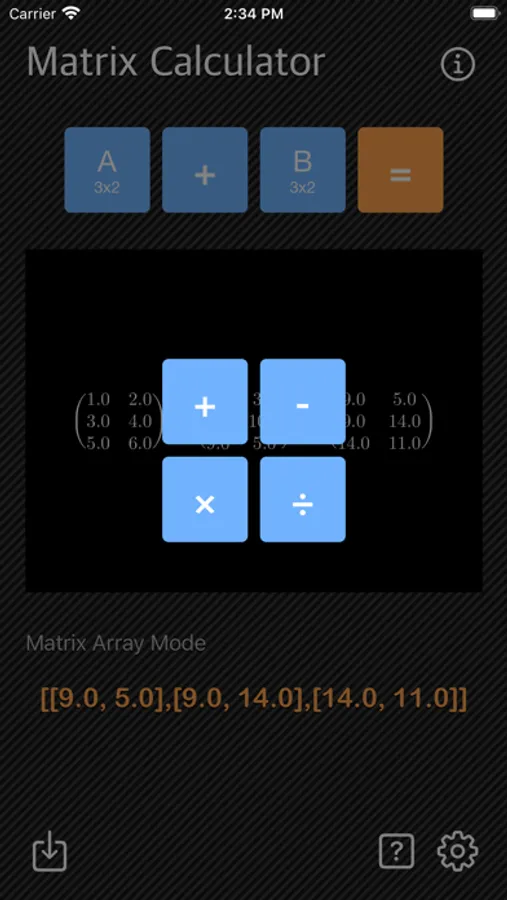 Matrix Calculator is math calculator to solve matrix operations, perform matrix operations on two matrices, including addition, subtraction, multiplication, and dividing fast and easy.