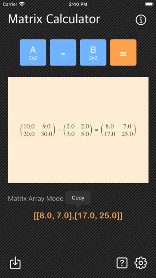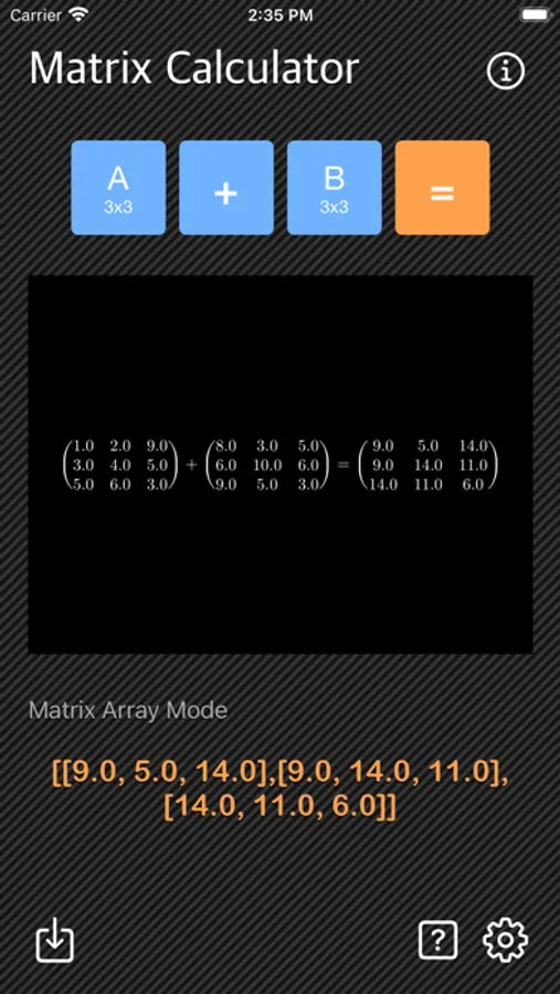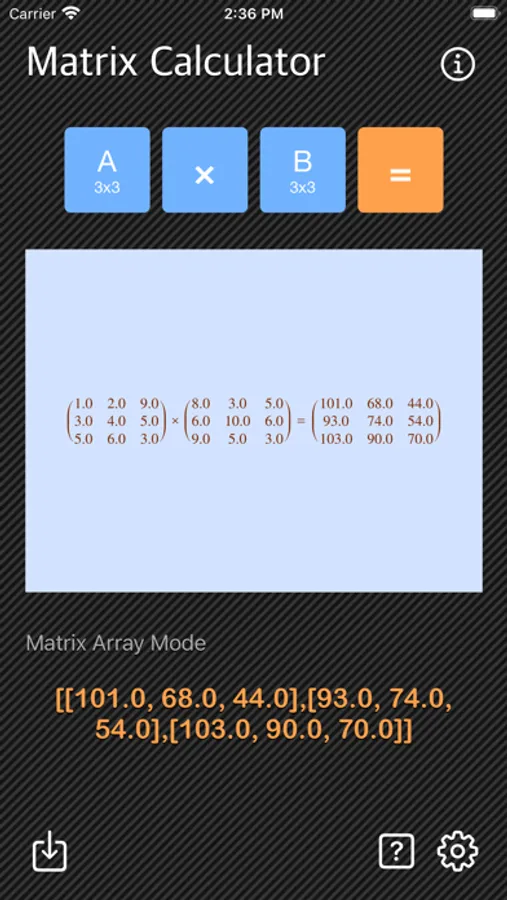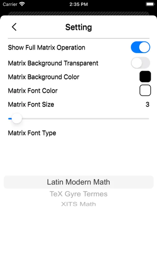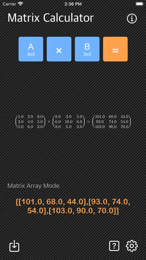 • Generate Matrix in Latex mode and save-able image to the camera roll.