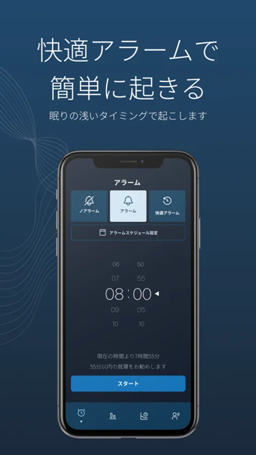 ・眠りの浅い時にスッキリ目覚められる、快適アラーム