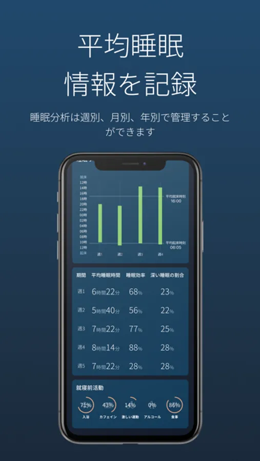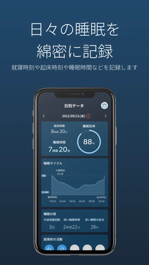 一流アスリートも使用する無料の睡眠アプリ。明日のパフォーマンスを最大化する為に…「睡眠の質」を見える化。日々の睡眠を計測・記録し、管理・比較することで、睡眠の質の向上をサポートします。ヘルスケアへの活用にも。