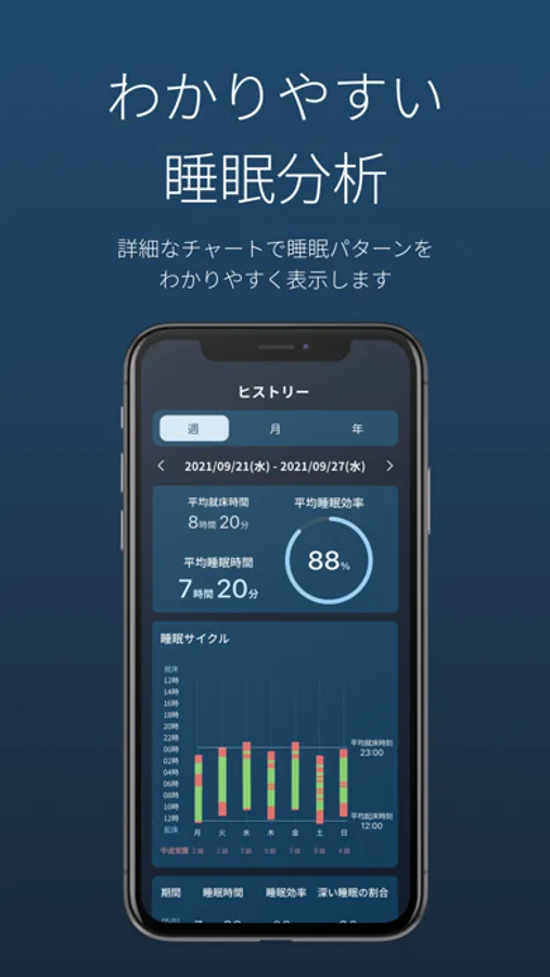 ・過去の睡眠との比較・分析を可能にするヒストリー