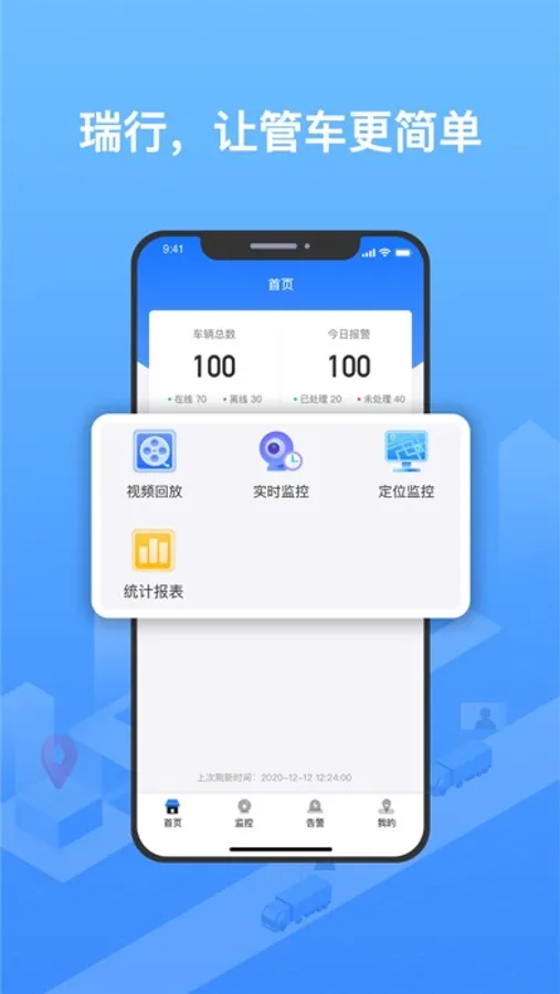 以保障行车安全和提供降本增效服务为出发点,为企业级客户提供车辆监控、数据分析、安全管理、细分行业运营等服务的全生命周期的数字化车队管理系统。