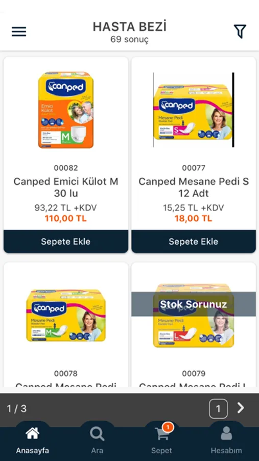 * Ürün kategorilerinde filtreleme yapabilirsiniz.