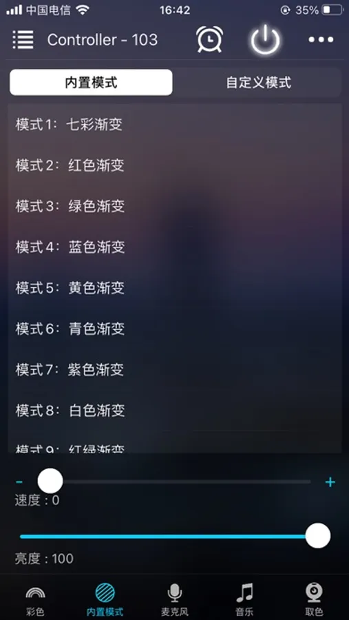 这是一个控制智能灯光的操作软件。针对射灯、筒灯 等灯光调控软件。有多种功能,多种颜色的,多达几十钟场景模式。