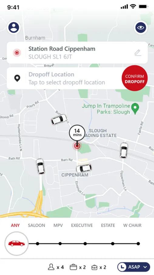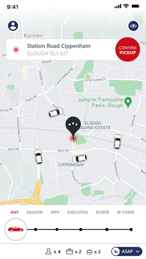 This APP has been designed to be used for journeys starting within a 10 mile radius of Burnham Station. Use this APP to book journeys starting within this area, “Out Of Bounds” or “Call Office” will require a quick phone call to our awaiting office staff.