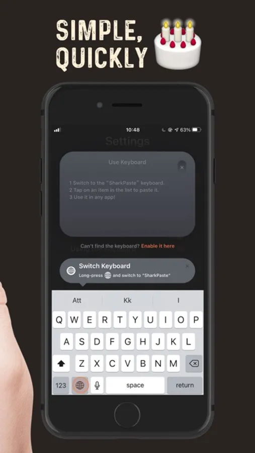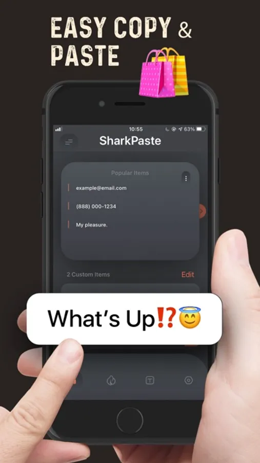 Add frequently used notes, emails, locations, bank accounts to this Copy Keyboard. Easily share your addresses, phone numbers, emails, emojis, songs, notes and any other just with one tap.