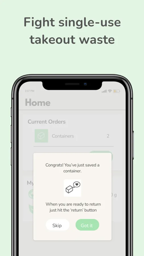Our mission is to eliminate all single-use plastic for food orders and help reduce one of the biggest causes for climate change and environmental pollution.