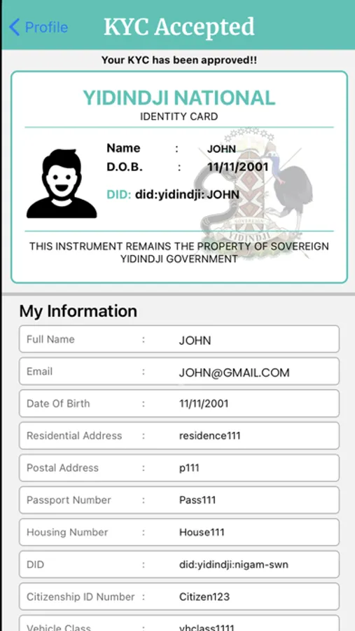 Yidindji SSID is an identity and digital currency wallet for Sovereign Yidindji Government and Sovereign Yidindji Dollar. Through this App, user can manage user’s private information in the form of Verifiable Credential(VC)s. These VCs are issued by the public identity such as the Governments, Banks, Hospitals, Universities Web Sites, Shopping Malls, etc. Government issues VC (Signed Document) related to nationality of the user. The issued VCs are stored in the Yidindji SSID and managed by the user through the App. User can present VC to prove the identity of the user.
