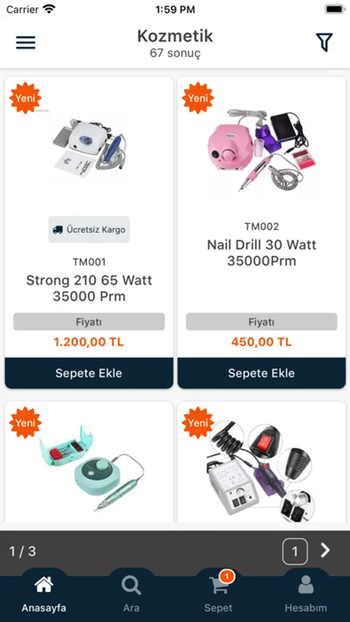 * Ürün kategorilerinde filtreleme yapabilirsiniz.